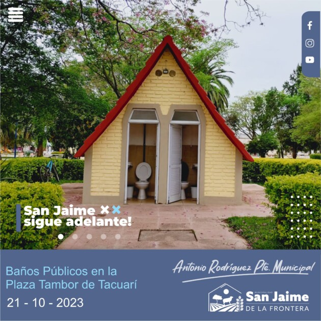 🚧 Obras y servicios públicos: La municipalidad de San Jaime comunica que los baños de la plaza se encuentran abiertos al público durante la mañana y la tarde, se solicita a la comunidad el cuidado y mantenimiento de los mismos ya que es un servicio importante para la comunidad.