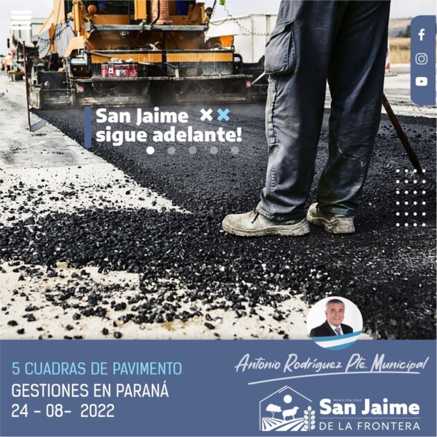 El Ministro de Planeamiento, Infraestructura y Servicios la Provincia, confirmó el buen término de las gestiones realizadas por el intendente Rodríguez, y se prepara la fase administrativa que dará pie la licitación de las 5 cuadras de pavimento para el casco cívico de San Jaime. Esta obra es estratégica para consolidar un centro de la ciudad que siente las bases para un desarrollo comercial y administrativo, donde el vecinos pueda realizar trámites y gestiones y sea la cara de bienvenida de quienes visiten nuestra ciudad que crece día a día.