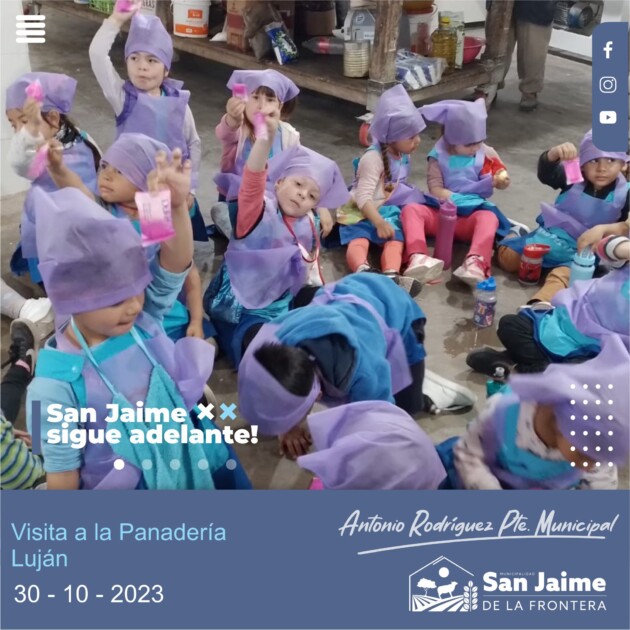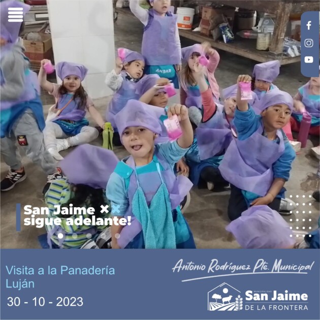 En el marco del Día mundial del lavado de manos que se celebra el 15 de Octubre y el 16 Día mundial de la alimentación, se llevaron adelante las actividades de visitas a panadería LUJAN de familia Shuster-Dalzotto.; Los niños de salas de 4 y 5 años de las Escuelas N° 22 YAPEYÚ y Nº 60 Malvinas Argentinas.