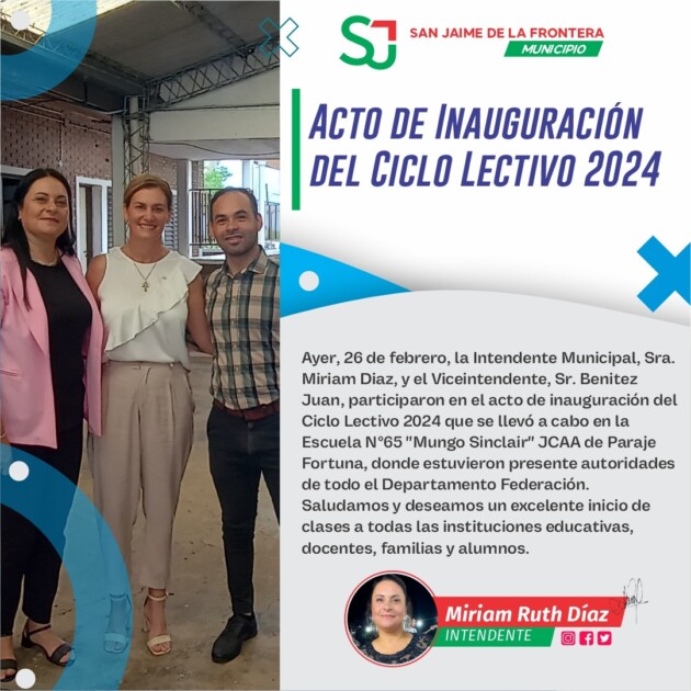 27 febrero, 2024 - En Destacadas Por Prensa Municipal Comentarios Apagados Acto de Inauguración. Prensa Municipal prensa@sanjaime.gob.ar Previo Campeonato Relámpago de Básquet Siguiente Dia de la Policía De Entre Rios
