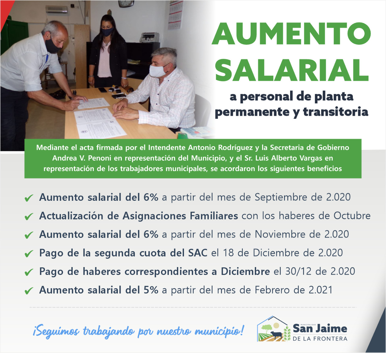 28 septiembre, 2020 - En Noticias Por Prensa Municipal Comentarios Apagados AUMENTO SALARIAL Prensa Municipal prensa@sanjaime.gob.ar Previo 1RA JORNADA DE PRACTICAS DE DEPORTES Siguiente CAPACITACIÓN DE DIRECTORES DE DEPORTES, PROTOCOLO COVID-19