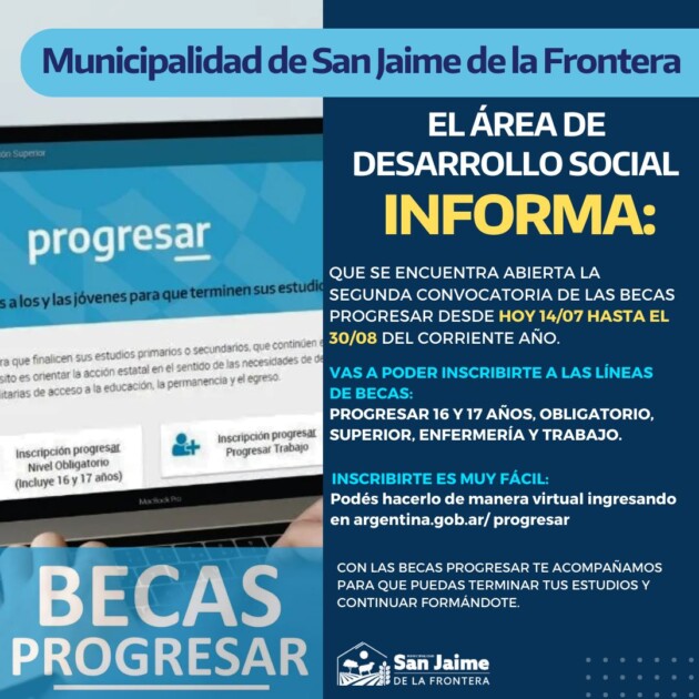 14 julio, 2023 - En Desarrollo Social‚ Gestión‚ Gobierno Por Prensa Municipal Comentarios Apagados Becas Progresar Prensa Municipal prensa@sanjaime.gob.ar Previo Día del Trabajador de la Energía Eléctrica Siguiente Aumento Salarial