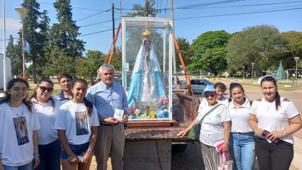 En la mañana de este Lunes, autoridades municipales y empleados municipales estuvieron recibiendo, en el municipio, al grupo religioso Peregrinos de la virgen de Itatí de la ciudad de Curuzú Cuatiá, Corrientes; Junto a la Madre de Itatí.