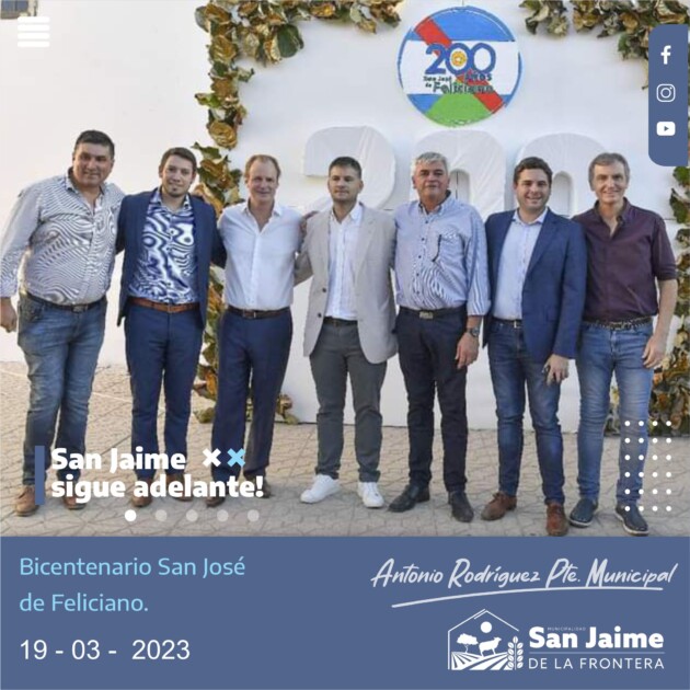 Este domingo 19 de Marzo el presidente Municipal Antonio Rodríguez estuvo participando en el acto cívico y festejos por los 200 años de la ciudad de San José de Feliciano donde estuvieron presentes funcionarios Municipales y Provinciales.