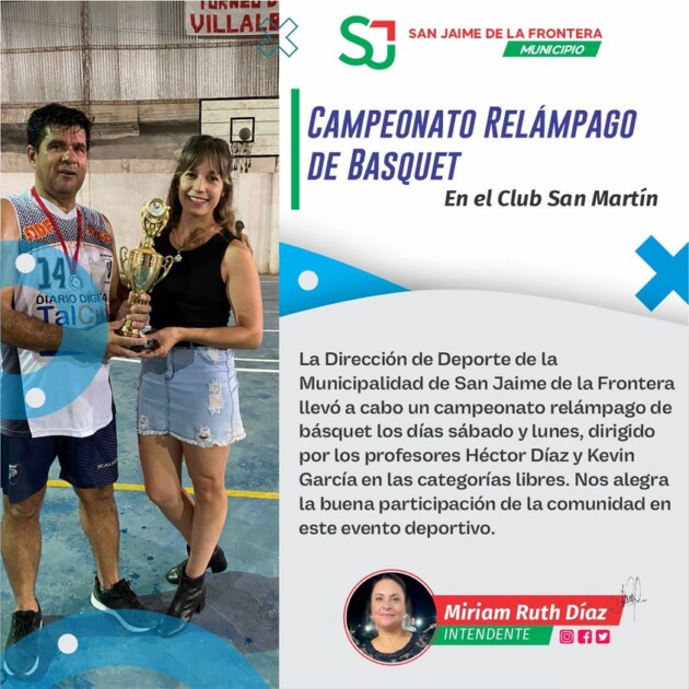 27 febrero, 2024 - En Destacadas Por Prensa Municipal Comentarios Apagados Campeonato Relámpago de Básquet Prensa Municipal prensa@sanjaime.gob.ar Previo Mantenimiento y Reparaciones. Siguiente Acto de Inauguración.