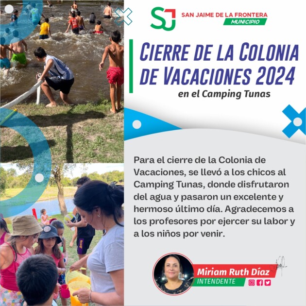 19 febrero, 2024 - En Deportes‚ Destacadas Por Prensa Municipal Comentarios Apagados Cierre de la Colonia de Vacaciones 2024 Prensa Municipal prensa@sanjaime.gob.ar Previo Bono Escolar 2024 Siguiente Mantenimiento de las calles
