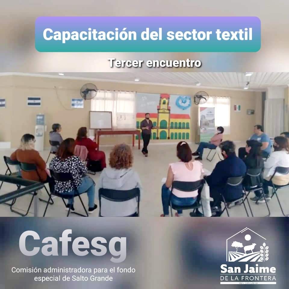Este jueves 30 de septiembre, se desarrolló en el salón de la terminal de ómnibus, el tercer encuentro de la instancia de formación en “Capacidades emprendedoras” para el sector textil. Participan del programa de fortalecimiento del sector textil 15 personas. Es un trabajo articulado entre la Municipalidad de San Jaime de la Frontera y CAFESG, para llevar adelante capacitaciones laborales en la localidad, como así también se lo viene haciendo con la capacitación en albañilería.