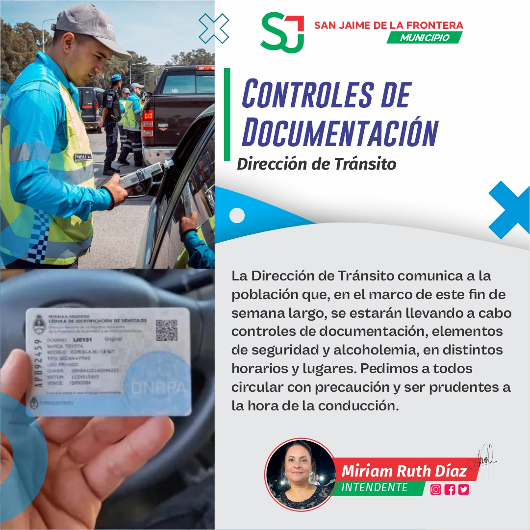 21 junio, 2024 - En Destacadas‚ Noticias‚ Tránsito e Inspección Por Prensa Municipal Comentarios Apagados CONTROLES DE DOCUMENTACIÓN Prensa Municipal prensa@sanjaime.gob.ar Previo NOVENA Y FIESTA PATRONAL Siguiente IMPUESTO AUTOMOTOR