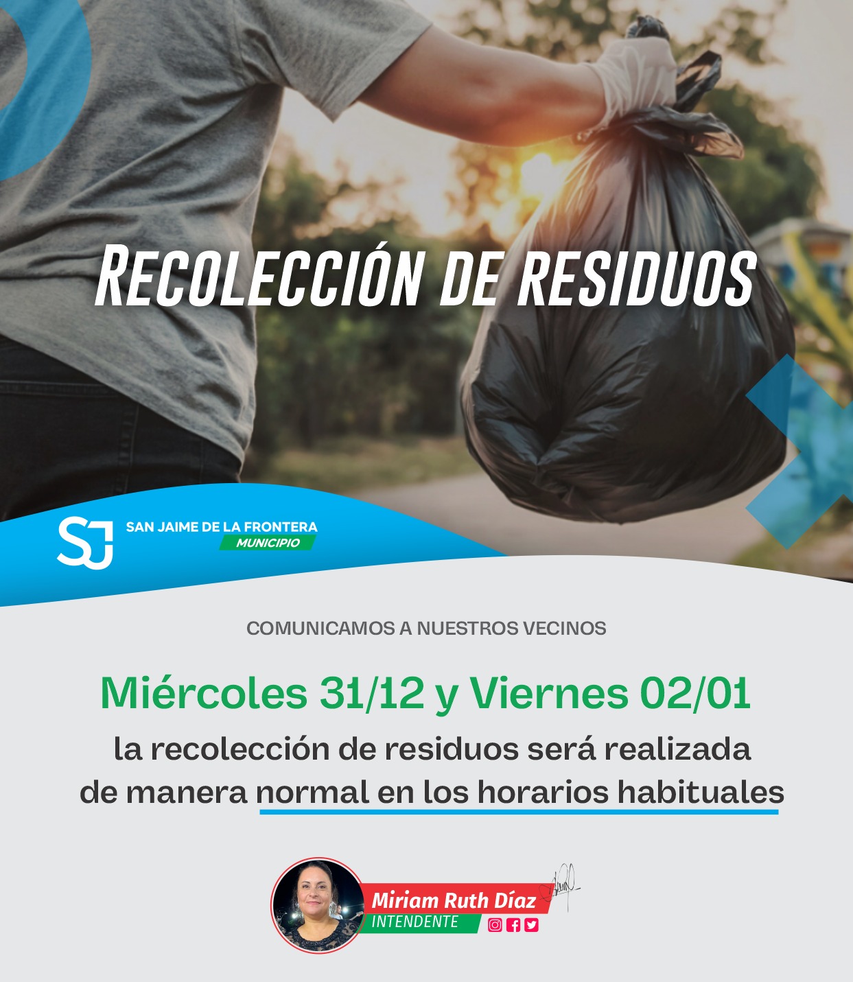 30 diciembre, 2025 - En Destacadas‚ Gestión‚ Noticias Por Prensa Municipal Comentarios Apagados CRONOGRAMA RECOLECCIÓN RESIDUOS Prensa Municipal prensa@sanjaime.gob.ar Previo COMUNICADO A LA COMUNIDAD Siguiente RESULTADOS CONCURSO NAVIDEÑO