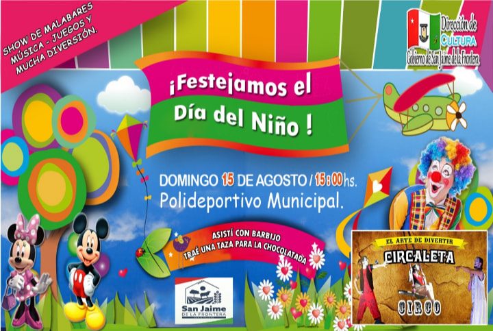 12 agosto, 2021 - En Noticias Por Prensa Municipal Comentarios Apagados DÁ DEL NIÑO Domingo 15 de Agosto Festejamos el Día del Niño en el polideportivo municipal , a partir de las 15: 00 hs. ¡ Te esperamos! Prensa Municipal prensa@sanjaime.gob.ar Previo ENTREGA DE APORTES DEL “PROGRAMA MEJOR ES HACER” Siguiente Día del Niño