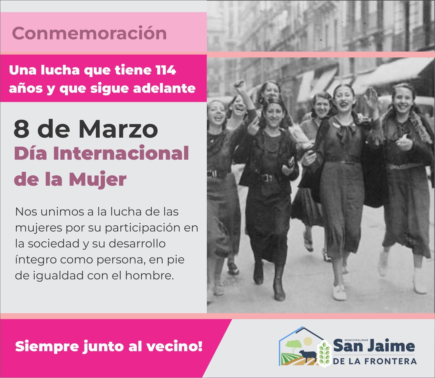 8 marzo, 2022 - En Noticias Por Prensa Municipal Comentarios Apagados DÍA INTERNACIONAL DE LA MUJER Prensa Municipal prensa@sanjaime.gob.ar Previo LLAMADO A LICITACIÓN CDI VIRGEN DE GUADALUPE Siguiente ESCUELA MUNICIPAL DE DEPORTE