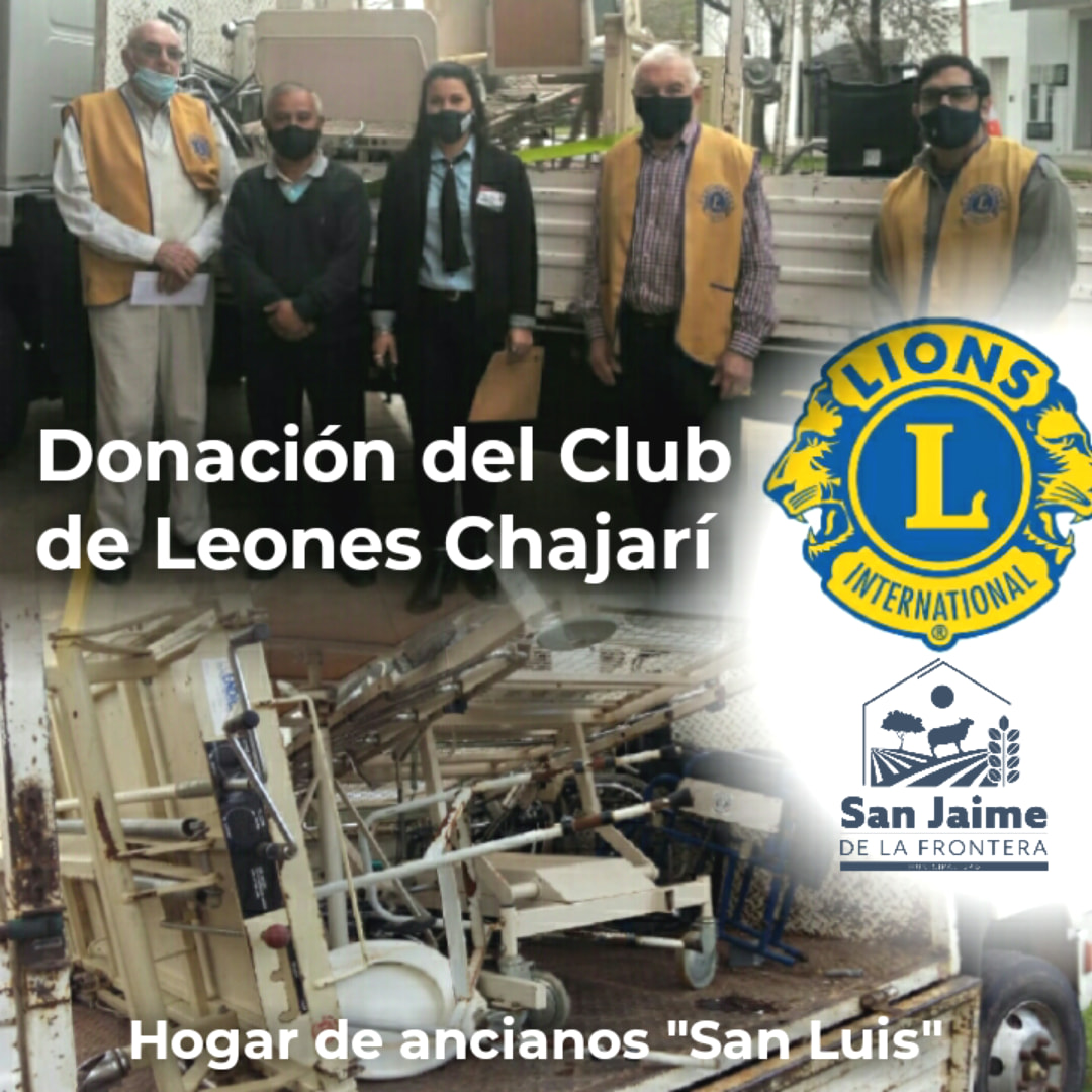En mañana de este lunes 12 de julio, integrantes de la comisión del prestigioso Club de Leones de la ciudad de Chajari, hicieron entrega de camas, sillas de rueda, entre otros elementos, a la secretaria de gobierno Andrea PENONI, quien estuvo acompañada por el director del hogar de ancianos “San Luis”, Sr. Carlos Medina. En nombre de toda la comunidad de San Jaime de la Frontera, queremos agradecer enormemente al Club de Leones por tan noble gesto hacia nuestro hogar de ancianos.