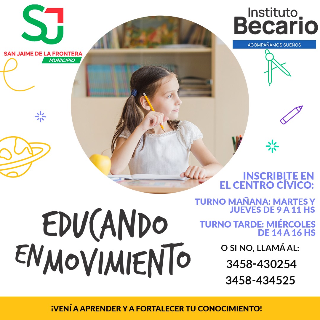 16 julio, 2024 - En Destacadas‚ Educación‚ Gestión‚ Noticias Por Prensa Municipal Comentarios Apagados EDUCANDO EN MOVIMIENTO Prensa Municipal prensa@sanjaime.gob.ar Previo DECRETO Nº2/2024 “LLAMADO A LICITACIÓN” Siguiente JORNADA DEPORTIVA INFANTIL