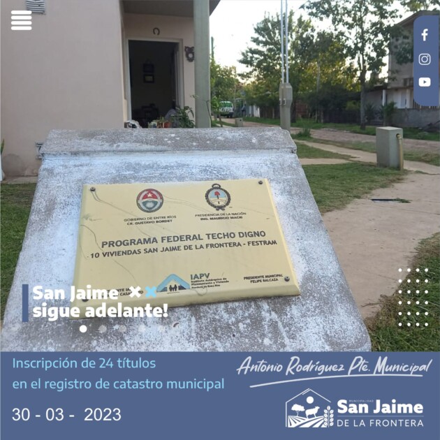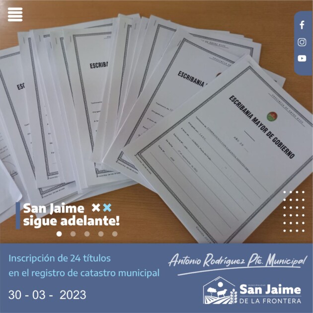 🏘 Se realizo la inscripción de 24 títulos en el registro de catastro municipal correspondiente a viviendas del IAPV “GRUPO HABITACIONAL 20 VIVIENDAS AGMER” y “GRUPO HABITACIONAL 10 VIVIENDAS SINDICATO MUNICIPAL”.
