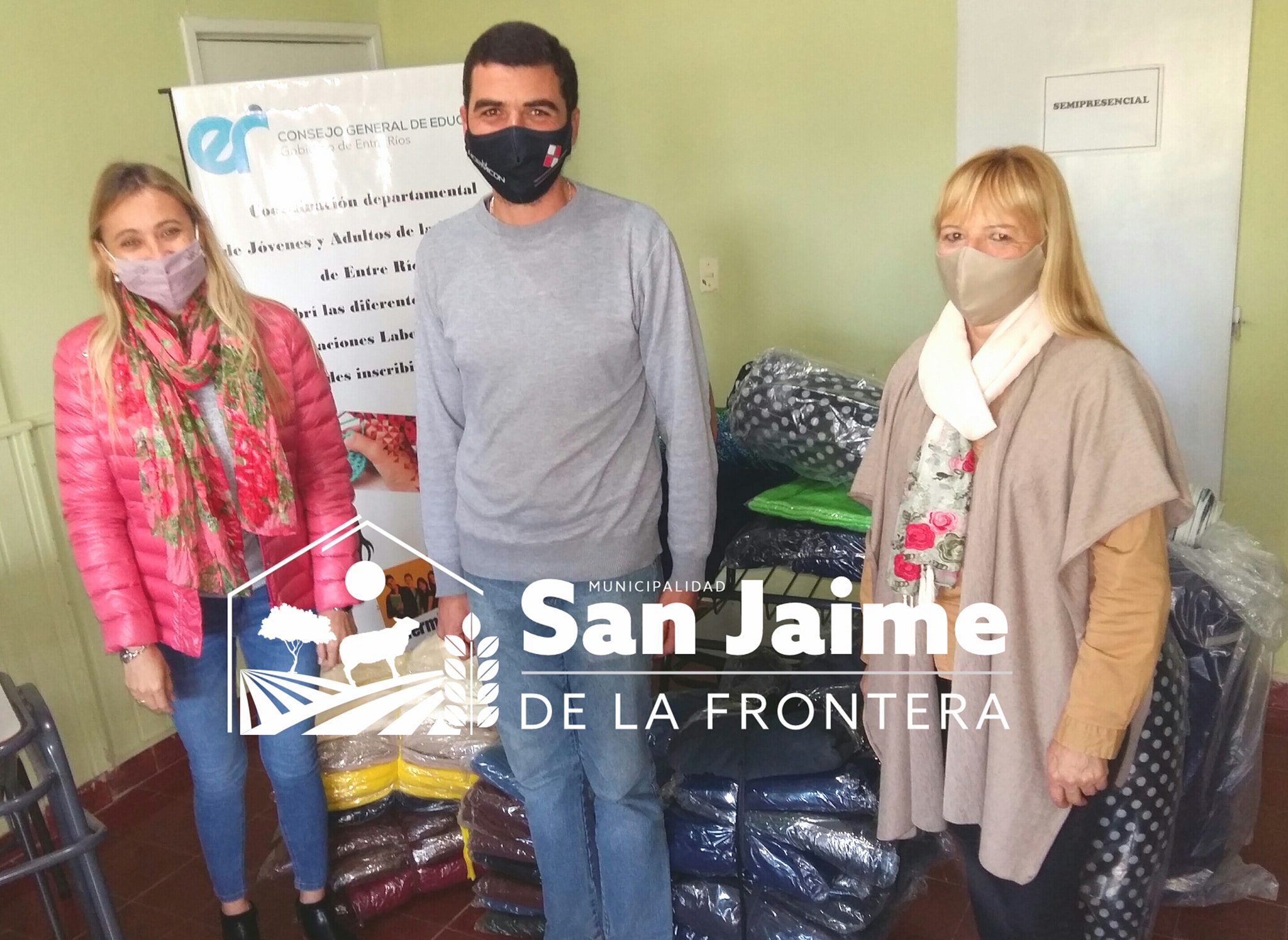 En la tarde de este viernes 02 de julio del corriente año, el director de Desarrollo Social de la Municipalidad de San Jaime de la Frontera, Roberto RODRÍGUEZ recibió de la diputada provincial Vanesa CASTILLO y de la coordinadora de Desarrollo Social del Dpto Federación, Liliana BURNS, frazadas y telas del Programa Cobijar del Ministerio de Desarrollo Social de Entre Ríos.