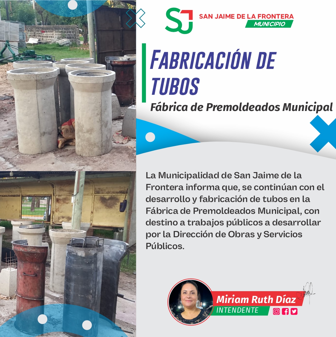 3 mayo, 2024 - En Destacadas‚ Gestión‚ Noticias‚ Obras y Servicios Públicos Por Prensa Municipal Comentarios Apagados FABRICACIÓN DE TUBOS Prensa Municipal prensa@sanjaime.gob.ar Previo REUNIÓN CON SEC. DE AMBIENTE Siguiente ENTREGA DE INDUMENTARIA