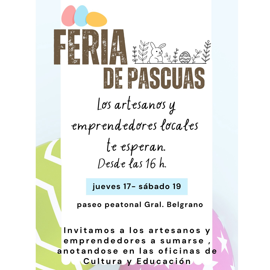14 abril, 2025 - En Cultura‚ Destacadas‚ Gestión Por Prensa Municipal Comentarios Apagados FERIA DE PASCUAS Prensa Municipal prensa@sanjaime.gob.ar Previo RECEPCIÓN DE APORTES DE ELEMENTOS PEDAGÓGICOS Siguiente RECOLECCIÓN DE RESIDUOS