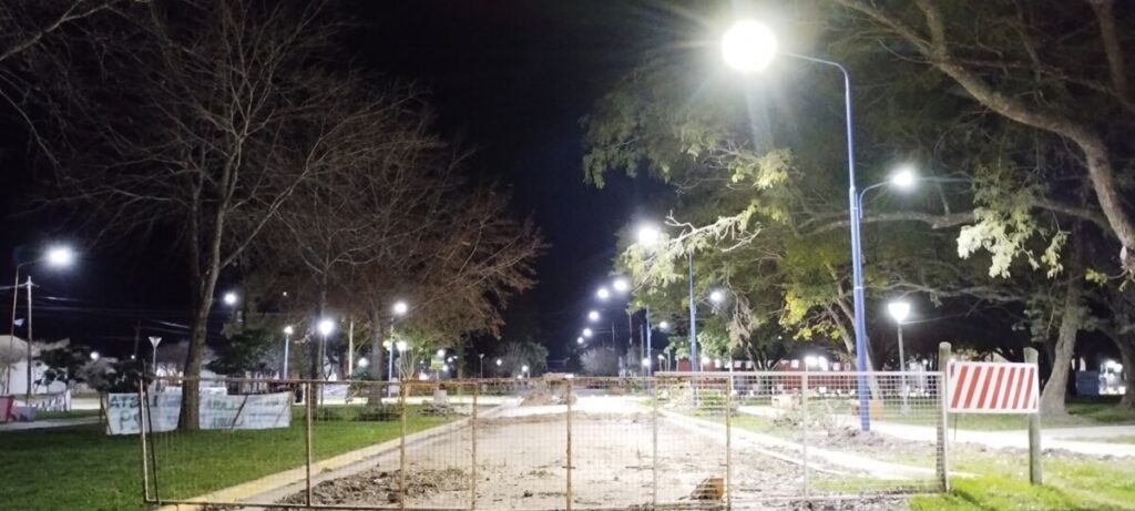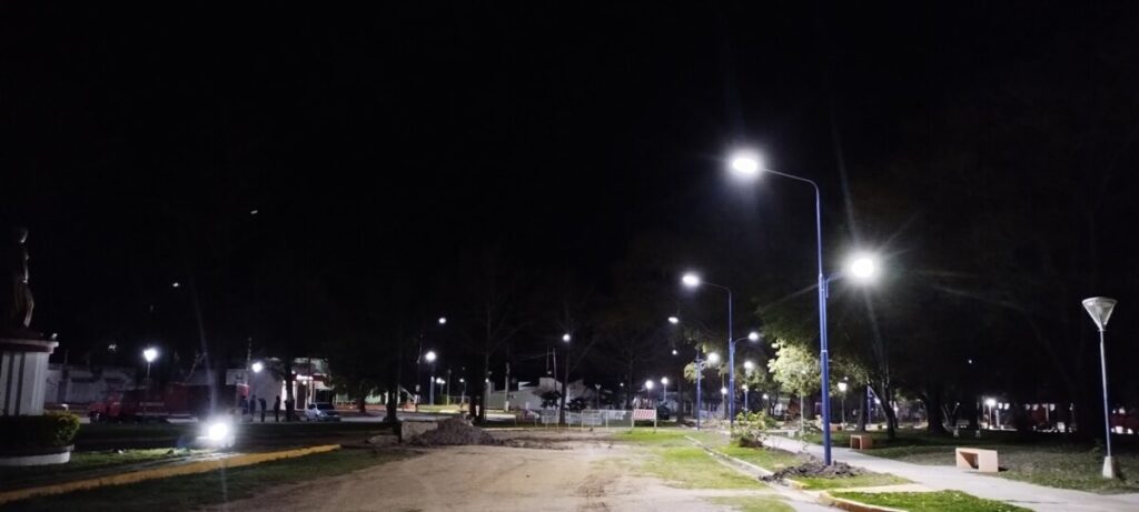 Se dió por finalizado el trabajo de iluminación en la plaza central, personal encargado del sector eléctrico estuvo realizando la instalación de nuevas luces LED que ya se encuentran en funcionamiento.