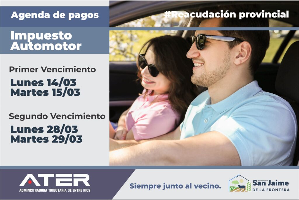 7 marzo, 2022 - En Noticias Por Prensa Municipal Comentarios Apagados IMPUESTO AUTOMOTOR Prensa Municipal prensa@sanjaime.gob.ar Previo PAGO LEY 4035 Siguiente CONVOCATORIA PRODUCTORES: EMERGENCIA AGROPECUARIA