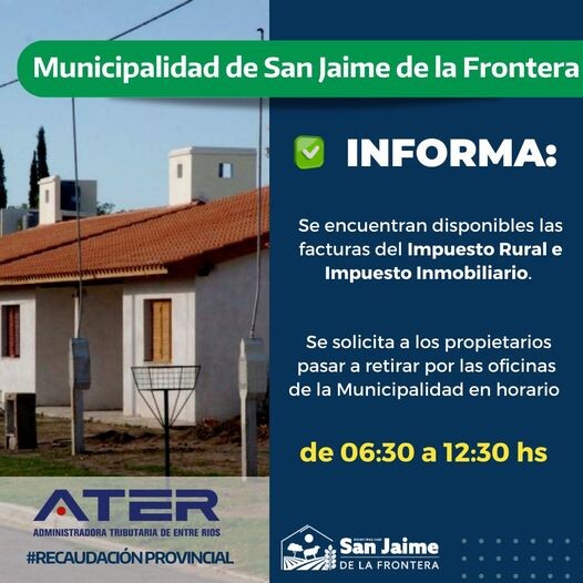 3 mayo, 2023 - En Gestión‚ Gobierno Por Prensa Municipal Comentarios Apagados Impuesto Inmobiliario y Rural Prensa Municipal prensa@sanjaime.gob.ar Previo Bromatología Municipal Informa Siguiente Inspección General Solicita