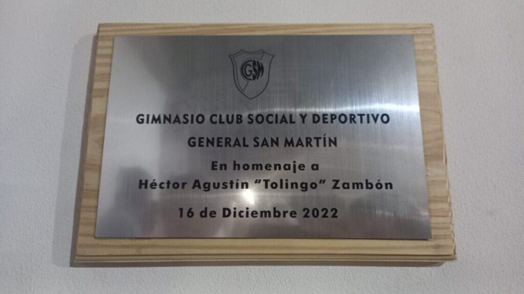 Durante la noche de este viernes en las instalaciones del club social y Deportivo San Martin el Intendente Antonio Rodriguez estuvo presente en la Inauguración del nuevo gimnasio que lleva el nombre de HECTOR AGUSTIN “TOLINGO” ZAMBON un ciudadano, amigo quien por muchos años fue colaborador y participó en los eventos deportivos relacionados al club.