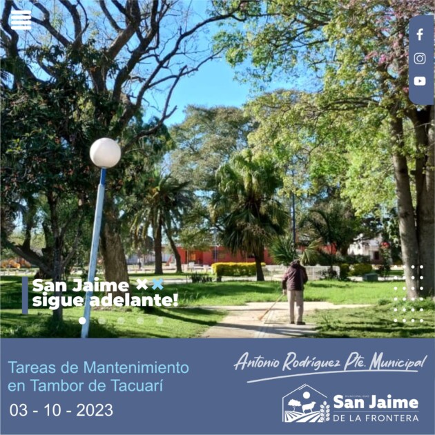 Mantenimiento de espacios verdes por parte del Personal municipal encargado del sector de parquizado se encuentra realizando tareas de mantenimiento en plaza tambor de Tacuari.