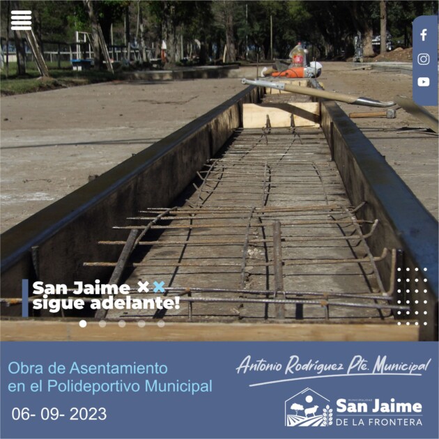 Se continúa trabajando en la obra del Polideportivo Municipal se viene realizando el suelo asentamiento con un total de 96 metros ya realizado, dicha obra está siendo construida por el personal municipal.