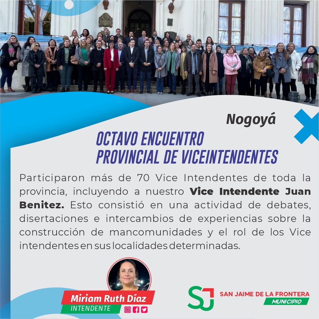 Se llevó a cabo el Octavo Encuentro Provincial de Vice Intendentes en Nogoyá. Participaron más de 70 Vice Intendentes de toda la provincia, incluyendo a nuestro Vice Intendente Juan Benitez. Esto consistió en una actividad de debates, disertaciones e intercambios de experiencias sobre la construcción de mancomunidades y el rol de los Vice Intendentes en sus localidades determinadas.