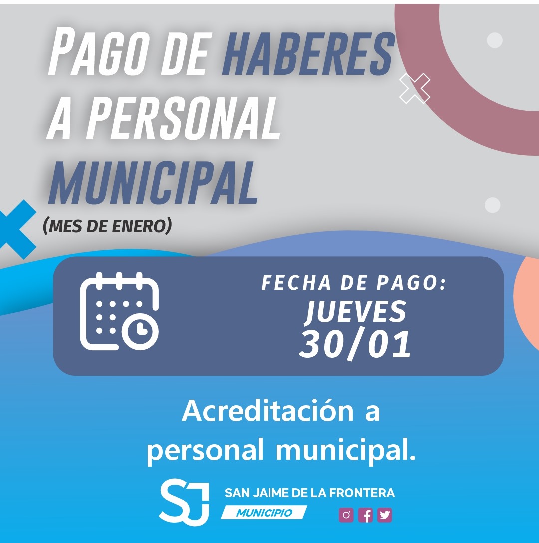 29 enero, 2025 - En Destacadas‚ Gestión‚ Gobierno‚ Noticias Por Prensa Municipal Comentarios Apagados PAGO DE HABERES Prensa Municipal prensa@sanjaime.gob.ar Previo RECITALES DE VERANO Siguiente PREVENÍ EL DENGUE