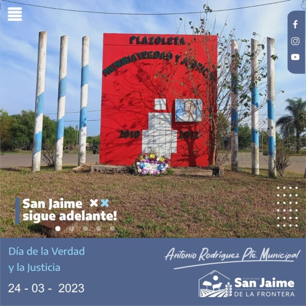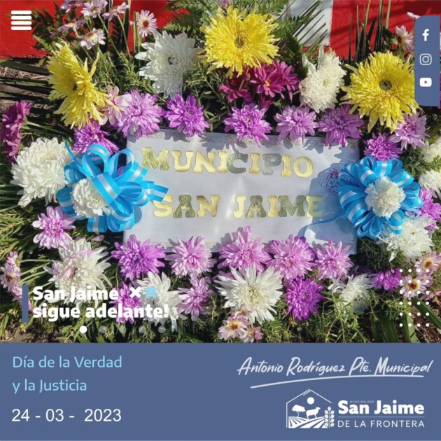 Tal y como estaba previsto en la mañana de este 24 se depositó una ofrenda floral en la plazoleta de la Memoria, Verdad y Justicia por parte del municipio local y el área de cultura.
