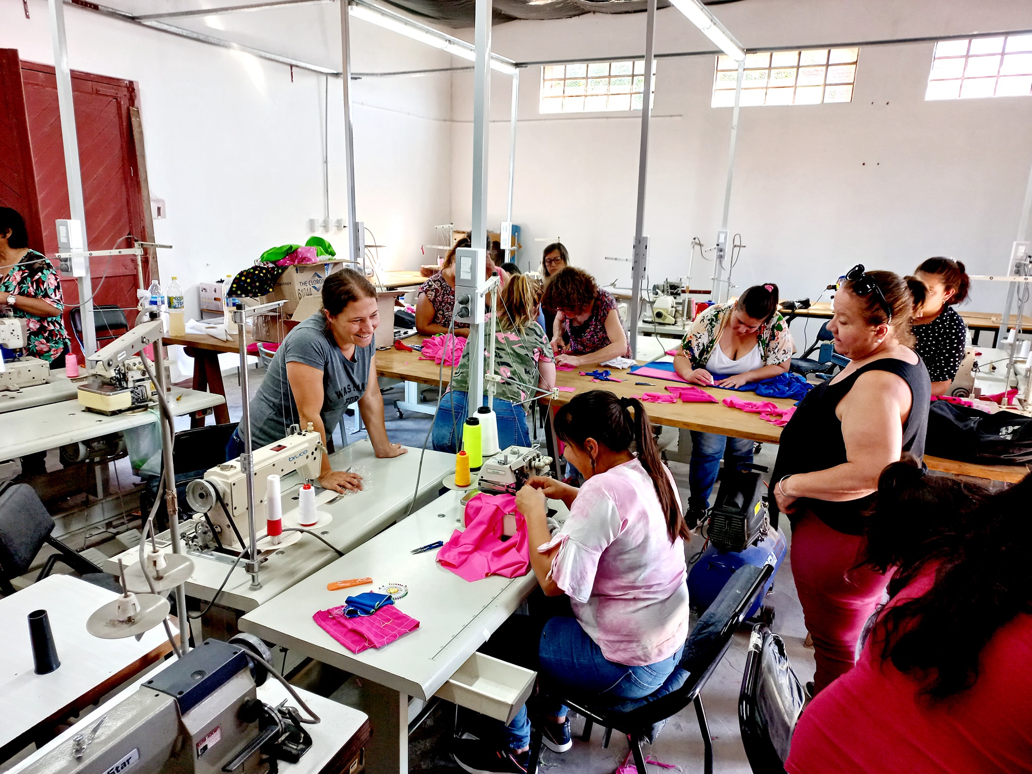 Luego de las clases teóricas de la capacitación dictada por Carolina Bonazola, perteneciente al equipo técnico de CAFESG, en la tarde de hoy martes 9 de noviembre, se llevó a cabo en las instalaciones del taller textil San Jaime, la primer práctica de la capacitación mencionada.