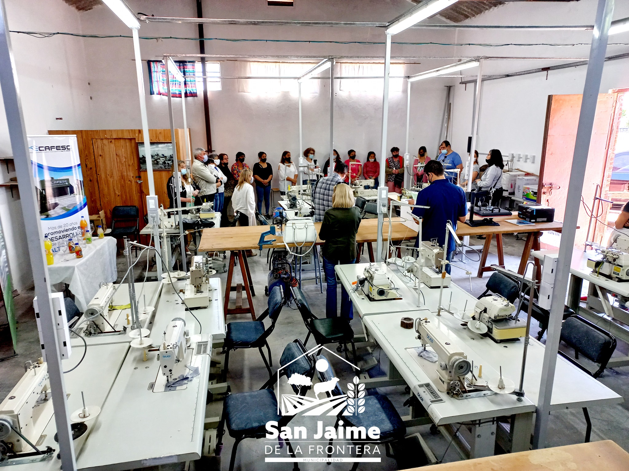 Este miércoles 20 de octubre quedó formalmente reactivado el “Taller Textil San Jaime”, con la presencia de la Vocal de la Comisión Administradora para el Fondo Especial de Salto Grande, (CAFESG) Celeste Lorenz, acompañada por el presidente municipal Antonio Rodríguez, la viceintendente Elsa Viviana Payer, y de todo el staff de personas que integran el grupo de trabajo. Se agradece enormemente el apoyo del presidente de la Comisión Técnica Mixta (Salto Grande) y de CAFESG, Ing. Luis Benedetto por hacer esto posible y al gobernador de la provincia Gustavo Bordet, por la puesta en valor de todas las maquinas que fueran reparadas en un 100%, y el reacondicionamiento del local, además de la capacitación que está llevando a cabo el personal, bajo la coordinación de una capacitadora de Cafesg para el acompañamiento del proyecto. Algunas de las líneas de trabajo van en sentido de que las y los emprendedores se unifiquen en una Cooperativa de trabajo textil, luego CAFESG dicte cursos de capacitación en emprendedurismo, cooperativismo y en la manufactura de los productos, siempre con el acompañamiento del municipio de San Jaime de la Frontera.