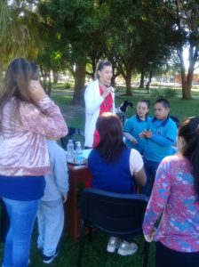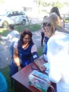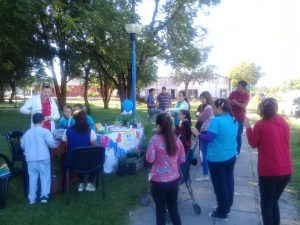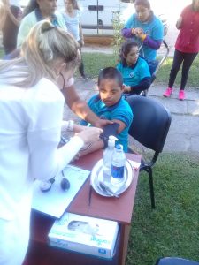 Frente a la parroquia.Se realizó controles de tensión arterial, y degustación de productos.