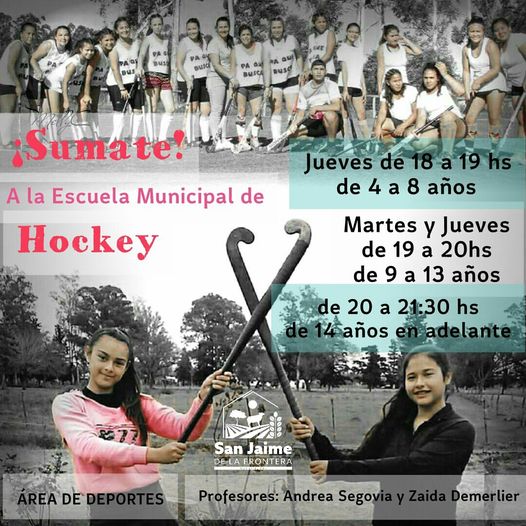Podés inscribirte en la Dirección de Deportes ubicado en el polideportivo municipal, o con las profesoras, Andrea Segovia y Zaida Demerlier.🏑 ¡Los esperamos!💕