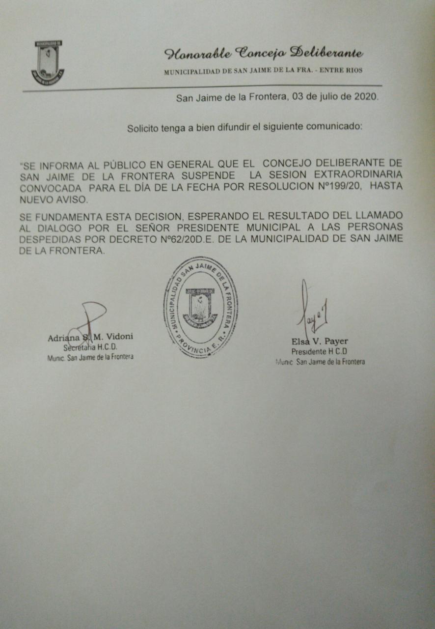 3 julio, 2020 - En Noticias Por Prensa Municipal Comentarios Apagados Suspensión de la Sesión Extraordinaria Prensa Municipal prensa@sanjaime.gob.ar Previo NOTA INTENDENTE AL H.C.D. Siguiente ️ACREDITACIÓN A BENEFICIARIOS DE LEY 4.035