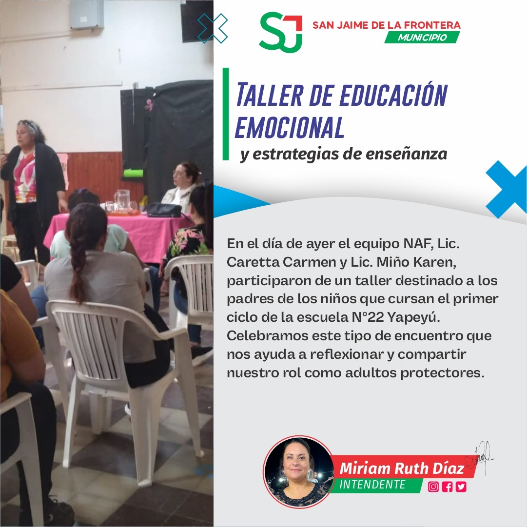 6 noviembre, 2025 - En Destacadas‚ Educación‚ Gestión Por Prensa Municipal Comentarios Apagados TALLER DE EDUCACIÓN EMOCIONAL Prensa Municipal prensa@sanjaime.gob.ar Previo DÍA DEL EMPLEADO MUNICIPAL Siguiente DESAFÍO TATUTÍ