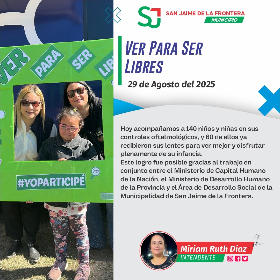30 agosto, 2025 - En Destacadas‚ Gestión‚ Noticias‚ Salud y Bienestar Por Prensa Municipal Comentarios Apagados VER PARA SER LIBRES Prensa Municipal prensa@sanjaime.gob.ar Previo PROGRAMA: “VER PARA SER LIBRES” Siguiente ENCUENTRO DANZAS FOLKLÓRICAS